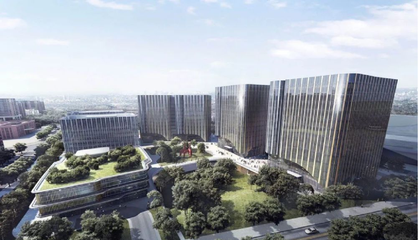 科技園項(xiàng)目一期總建筑面積約22.5萬(wàn)平方米,包含6棟研發(fā)樓和2層地下車庫(kù)(地下共3層,一二期地下相互聯(lián)通),還設(shè)有下沉廣場(chǎng)和商鋪,敞亮的下沉廣場(chǎng)將所有建筑連在了一起。T6樓設(shè)置了戶外屋頂花園,特別鋪設(shè)